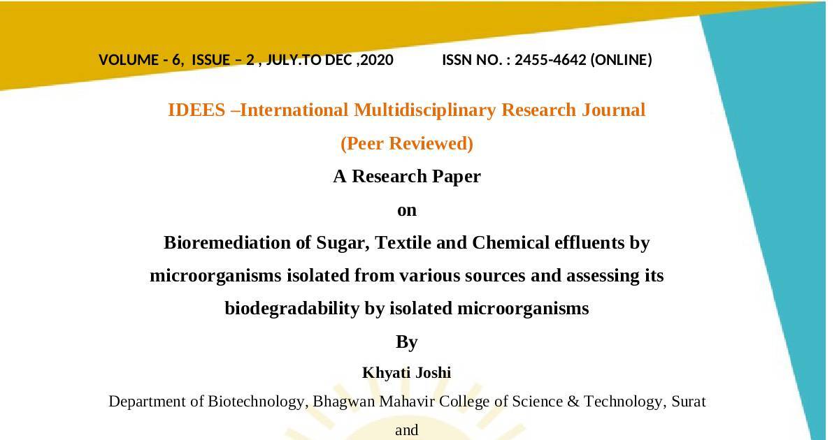 Bioremediation of Sugar, Textile and Chemical effluents by