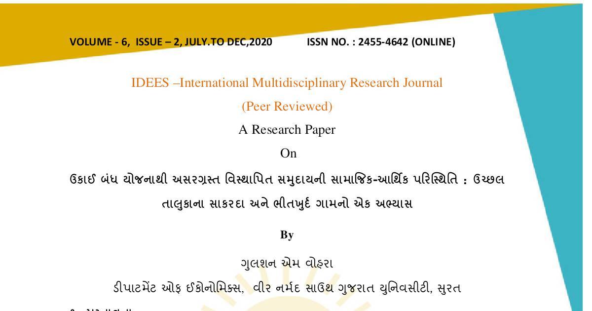 VOLUME - 6, ISSUE – 2, JULY.TO DEC,2020 ISSN NO. : 2455-4642 (ONLINE)