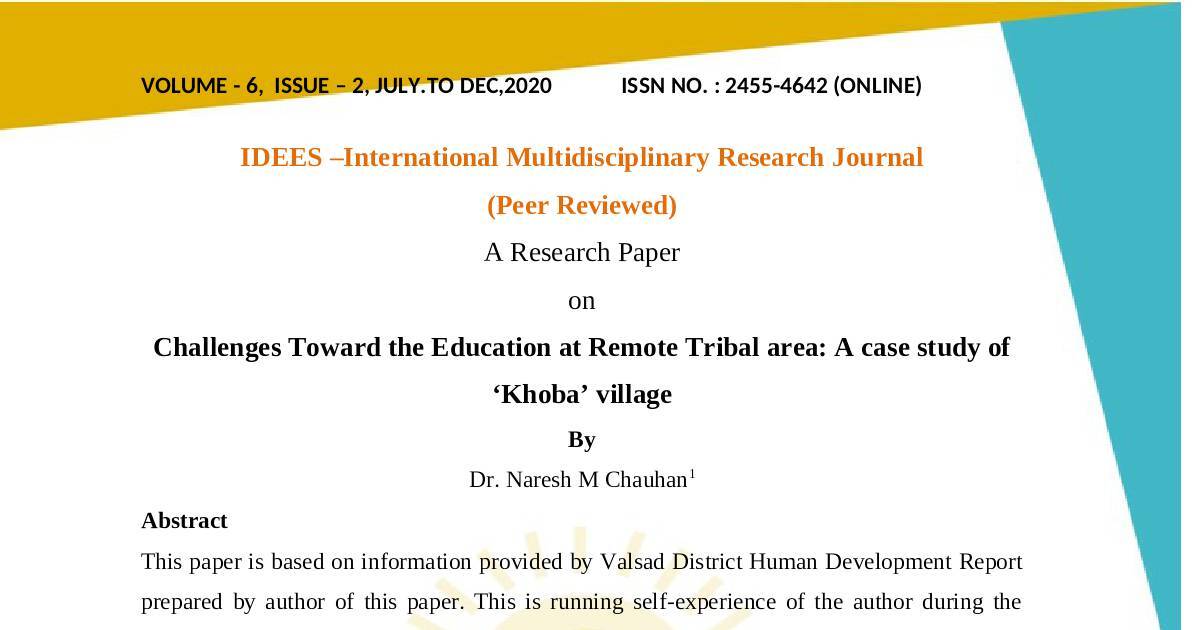 Education at Remote Tribal area, this case study is about ‘Khoba’ village. Located at the