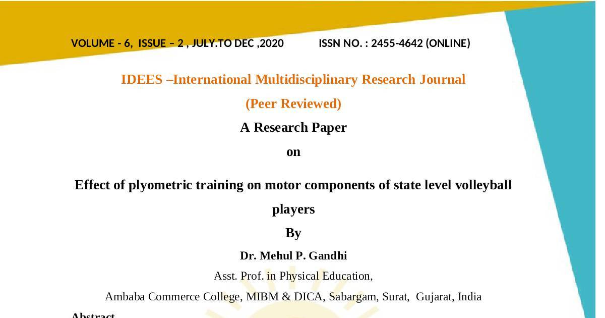 Keywords: plyometric training, speed, leg explosive power,Abdominal Muscular Endurance
