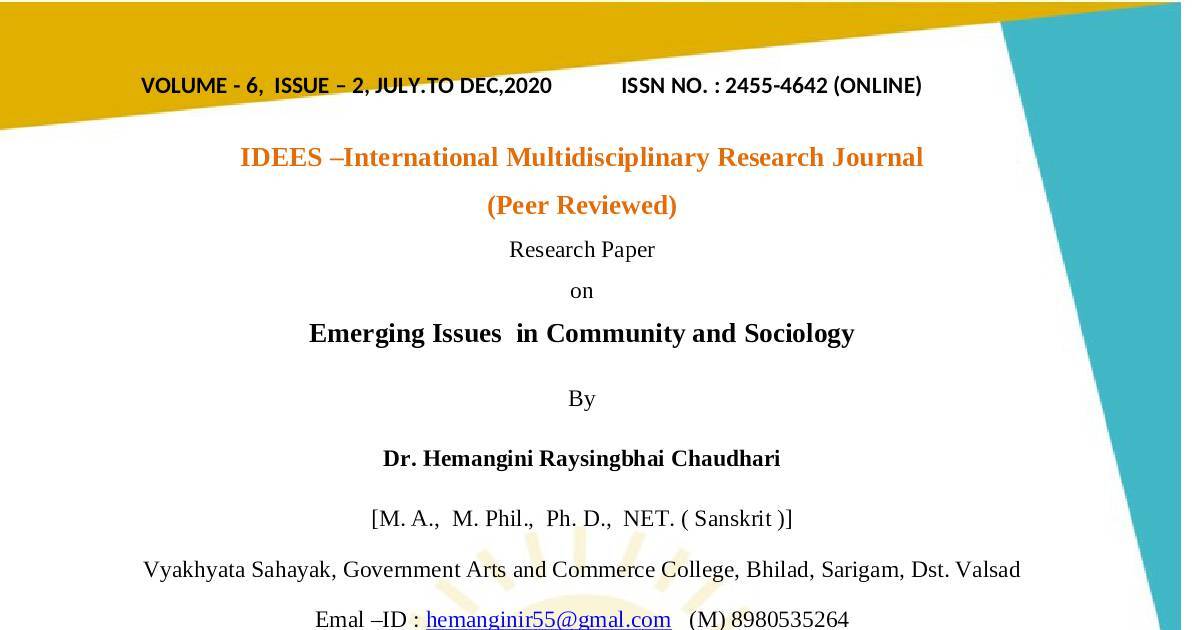 VOLUME - 6, ISSUE – 2, JULY.TO DEC,2020 ISSN NO. : 2455-4642 (ONLINE)