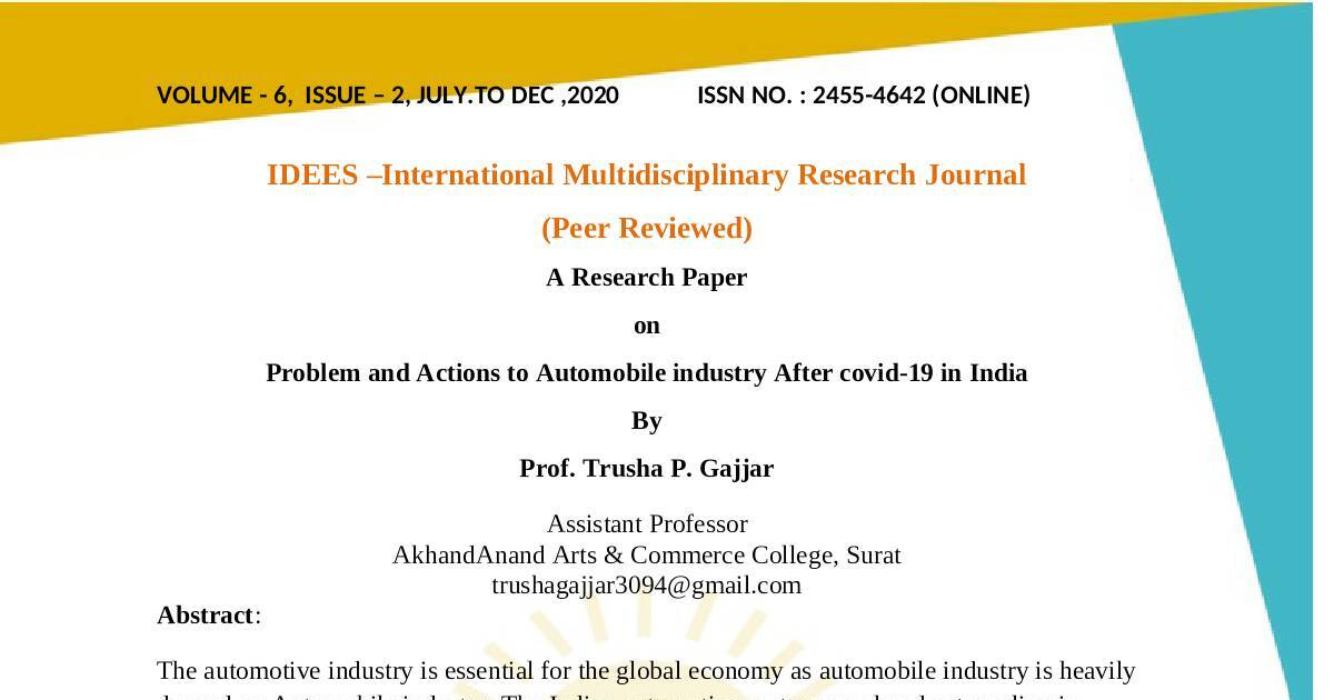 VOLUME - 6, ISSUE – 2, JULY.TO DEC ,2020 ISSN NO. : 2455-4642 (ONLINE)