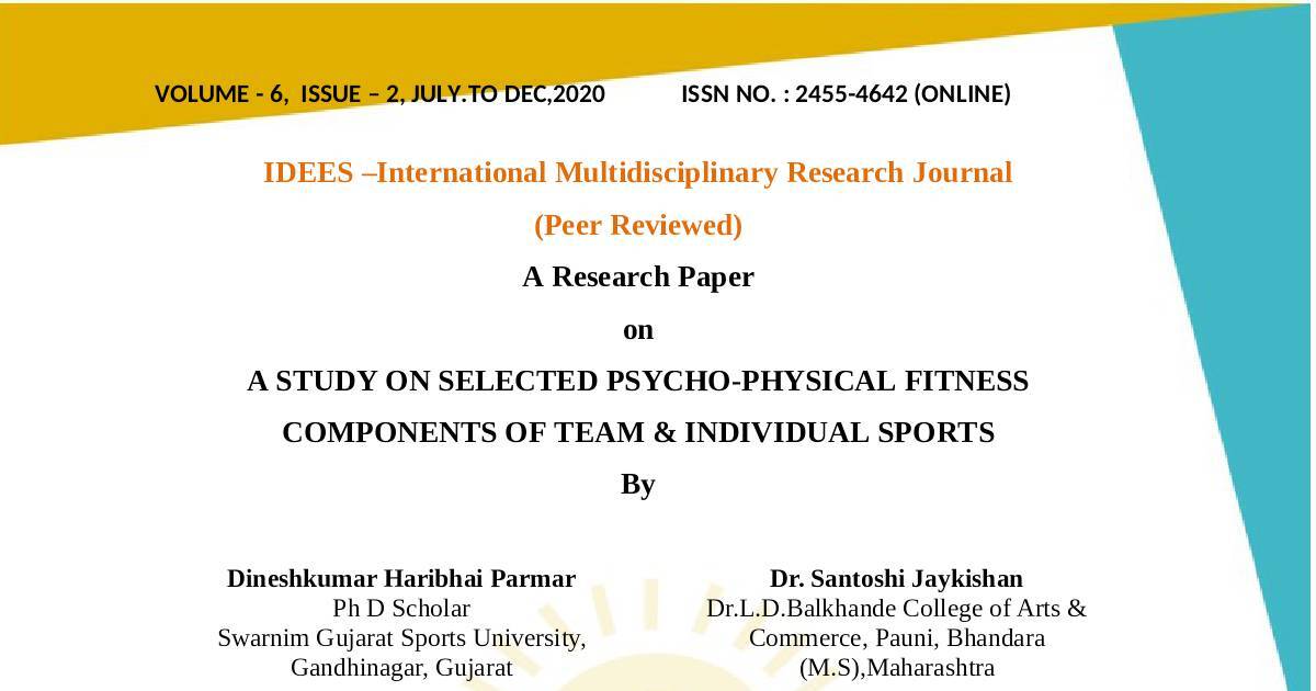 Fitness Components of Team & Individual Sports.” 100 players were selected as subjects
