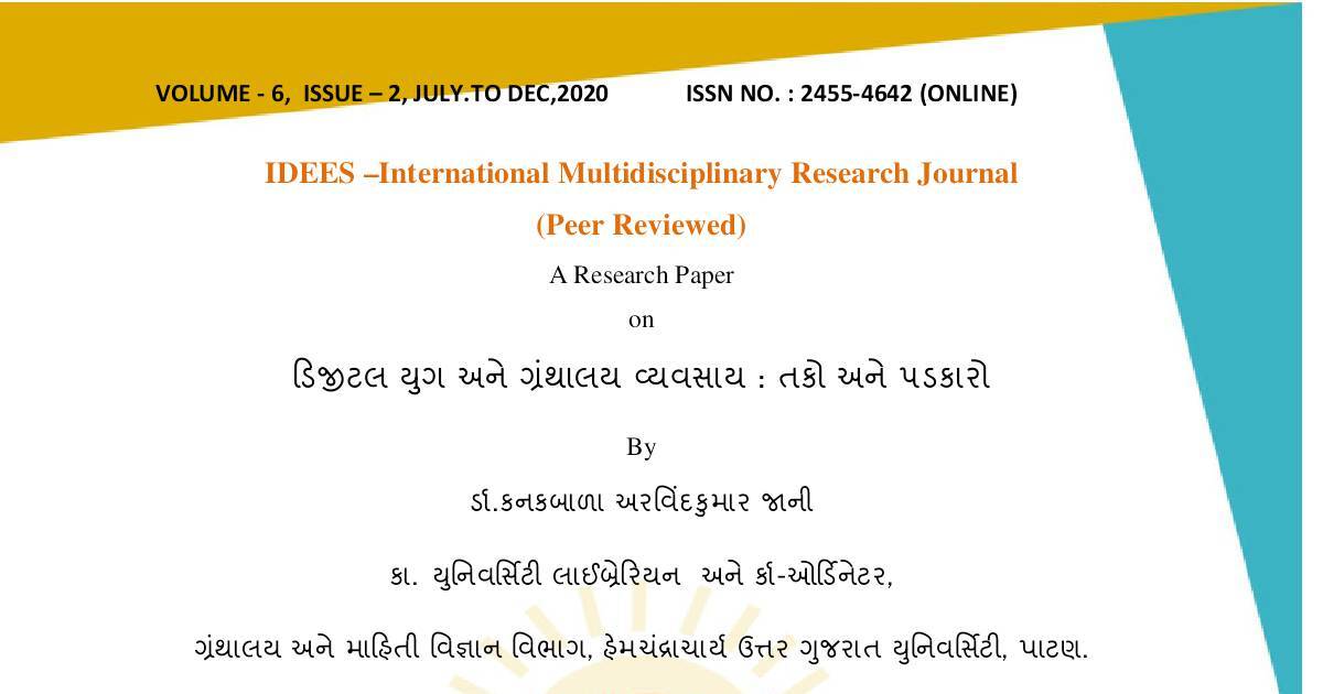 VOLUME - 6, ISSUE – 2, JULY.TO DEC,2020 ISSN NO. : 2455-4642 (ONLINE)