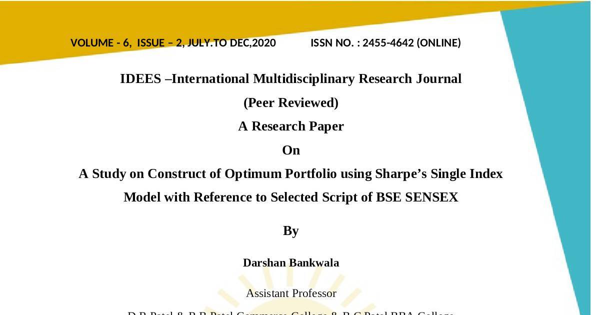 A Study on Construct of Optimum Portfolio using Sharpe’s Single Index