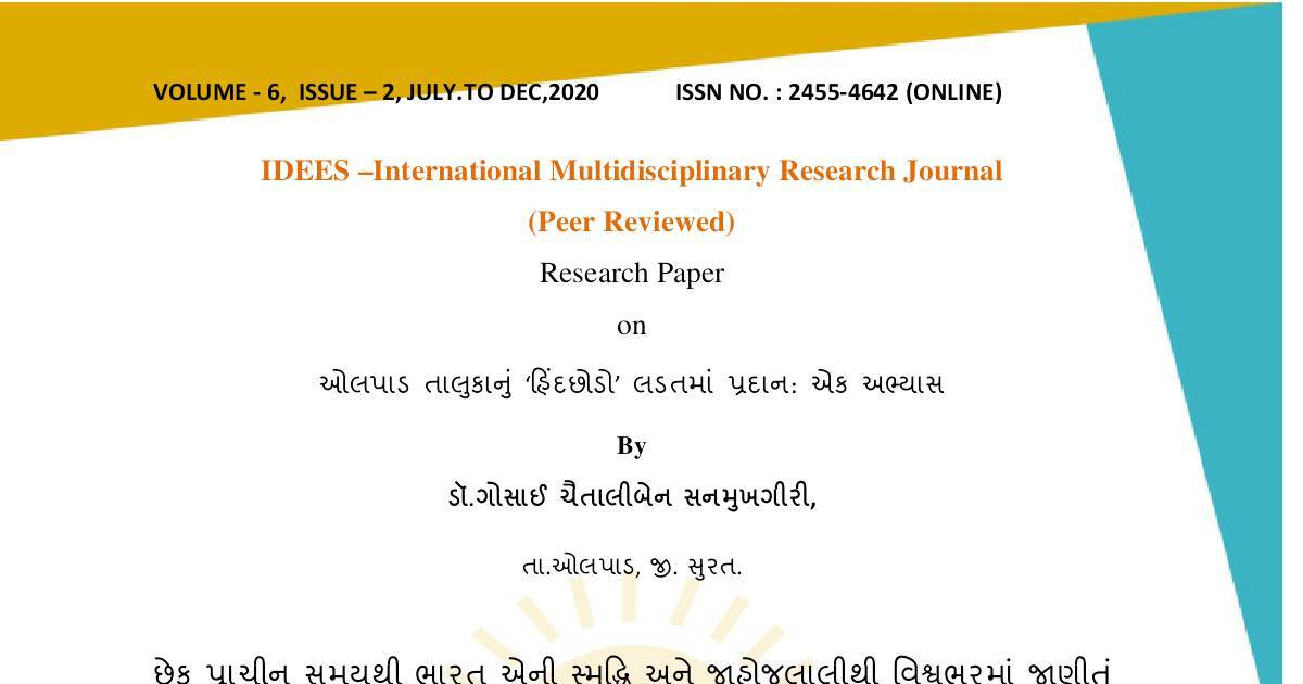 VOLUME - 6, ISSUE – 2, JULY.TO DEC,2020 ISSN NO. : 2455-4642 (ONLINE)