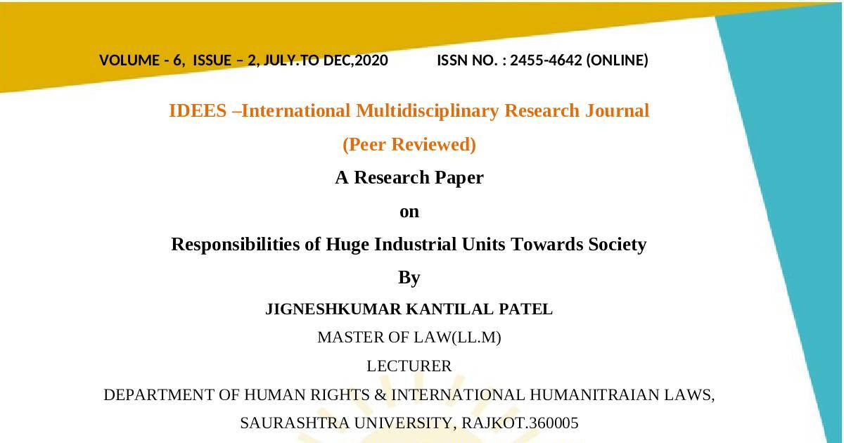 Responsibilities of Huge Industrial Units Towards Society