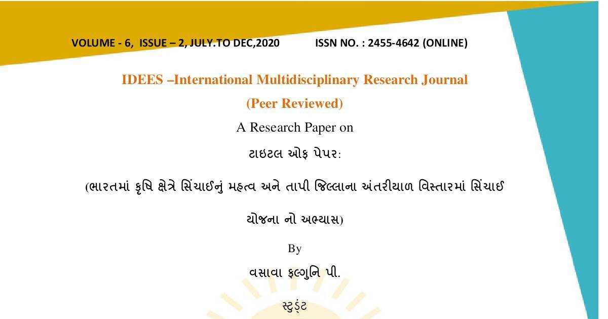 VOLUME - 6, ISSUE – 2, JULY.TO DEC,2020 ISSN NO. : 2455-4642 (ONLINE)