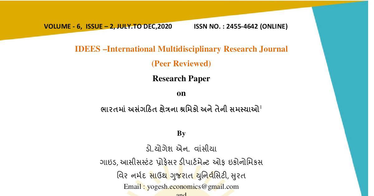 VOLUME - 6, ISSUE – 2, JULY.TO DEC,2020 ISSN NO. : 2455-4642 (ONLINE)