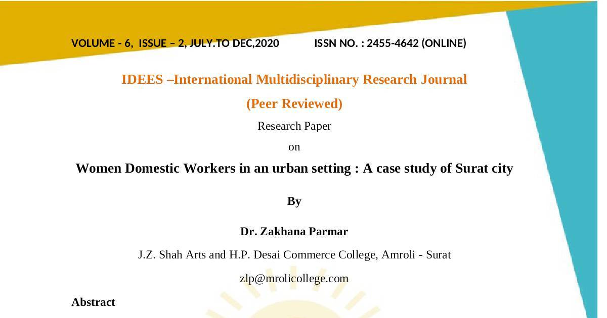 Women Domestic Workers in an urban setting : A case study of Surat city
