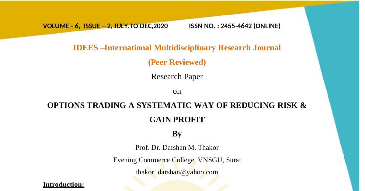 OPTIONS TRADING A SYSTEMATIC WAY OF REDUCING RISK &