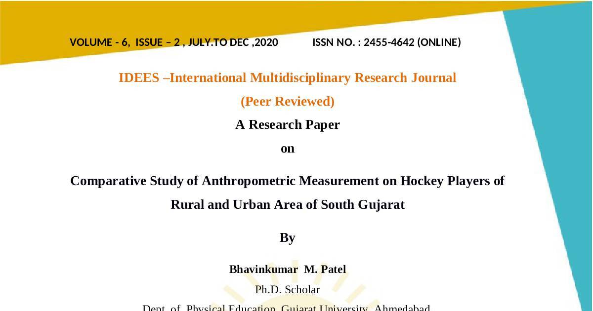 Dept. of Physical Education, Gujarat University, Ahmedabad.