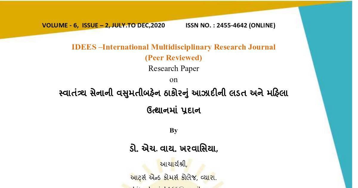 VOLUME - 6, ISSUE – 2, JULY.TO DEC,2020 ISSN NO. : 2455-4642 (ONLINE)