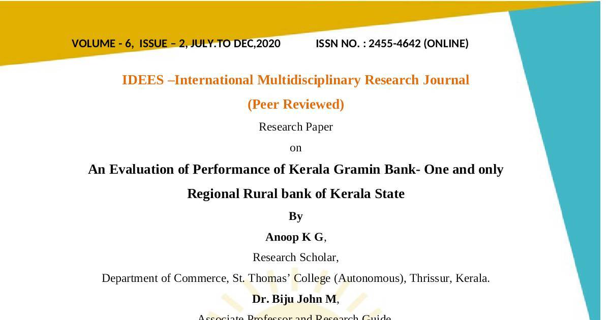 An Evaluation of Performance of Kerala Gramin Bank- One and only