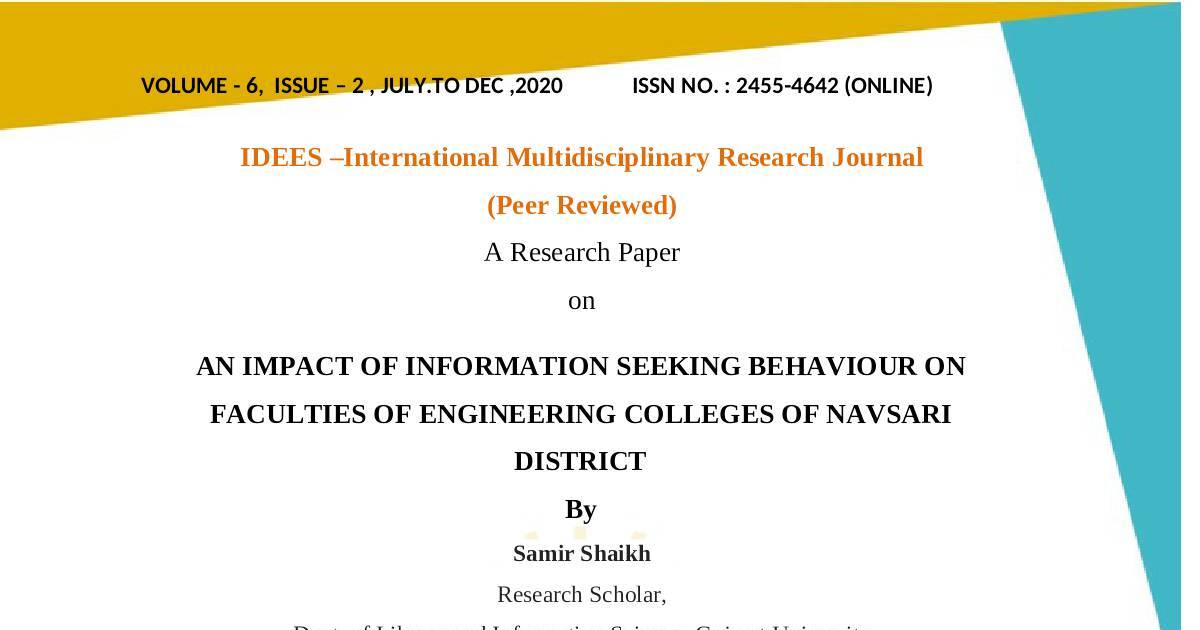 VOLUME - 6, ISSUE – 2 , JULY.TO DEC ,2020 ISSN NO. : 2455-4642 (ONLINE)