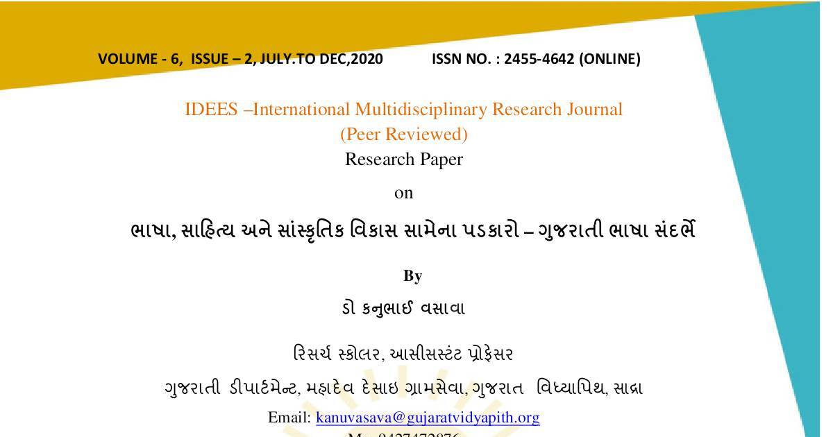 VOLUME - 6, ISSUE – 2, JULY.TO DEC,2020 ISSN NO. : 2455-4642 (ONLINE)