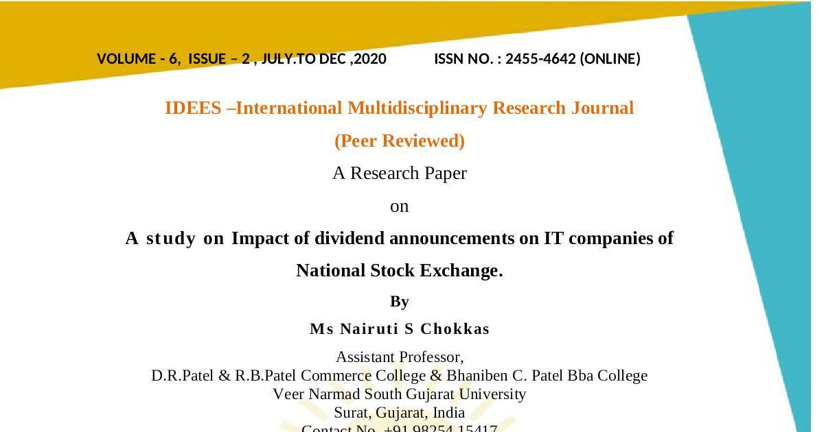 Key word: Dividend announcement, Price Reaction, National Stock Exchange