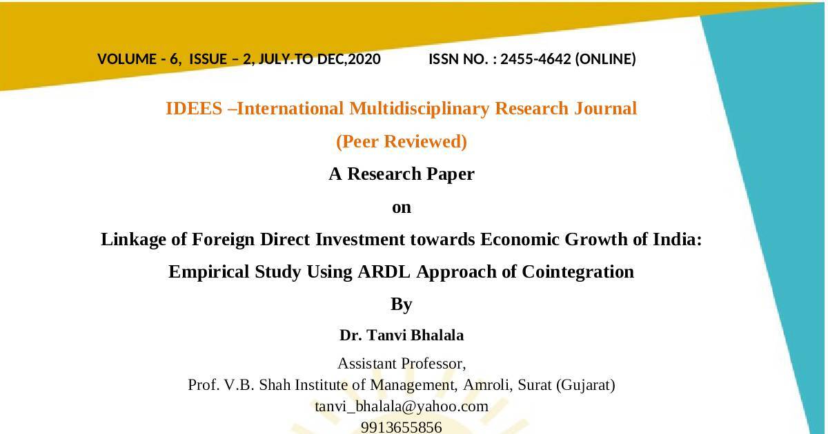 Linkage of Foreign Direct Investment towards Economic Growth of India: