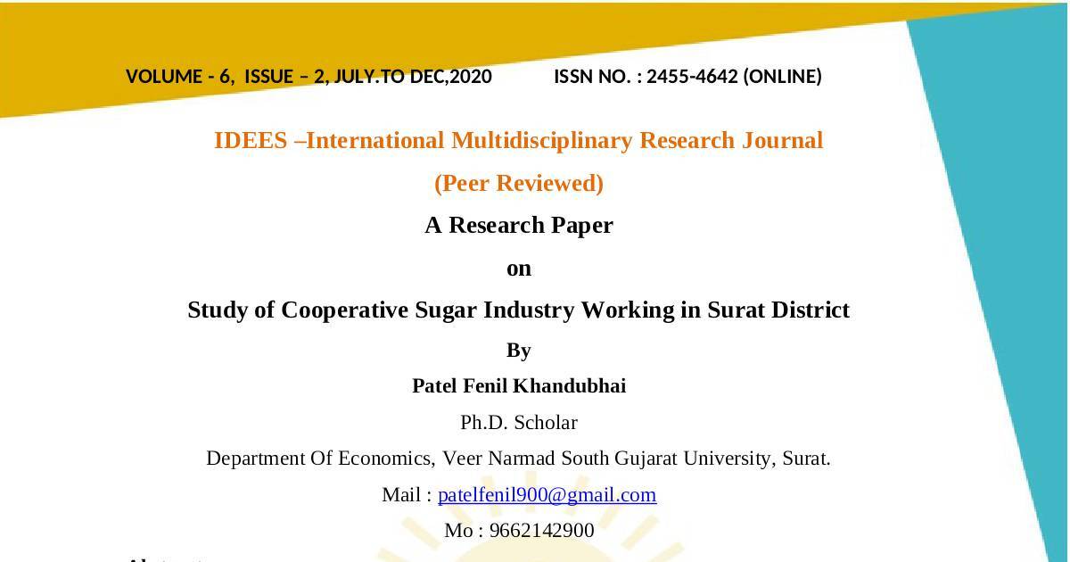 Study of Cooperative Sugar Industry Working in Surat District