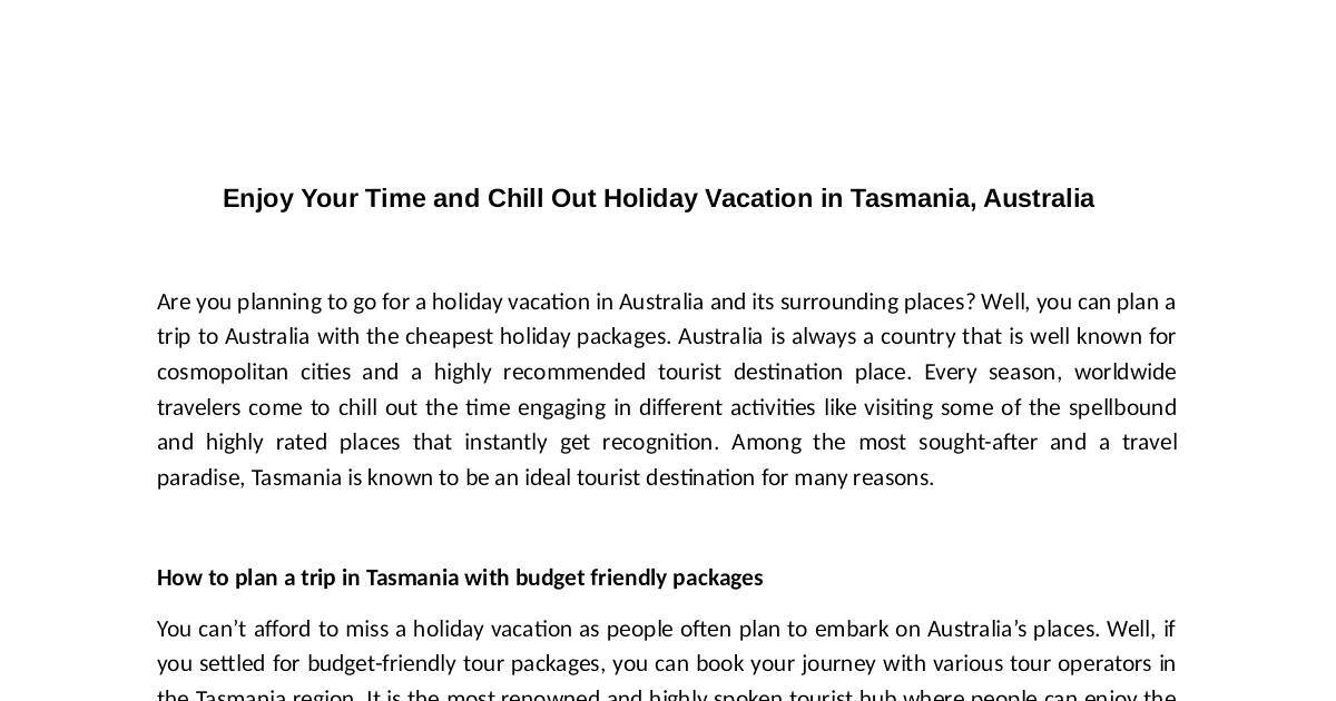 Enjoy Your Time and Chill Out Holiday Vacation in Tasmania, Australia