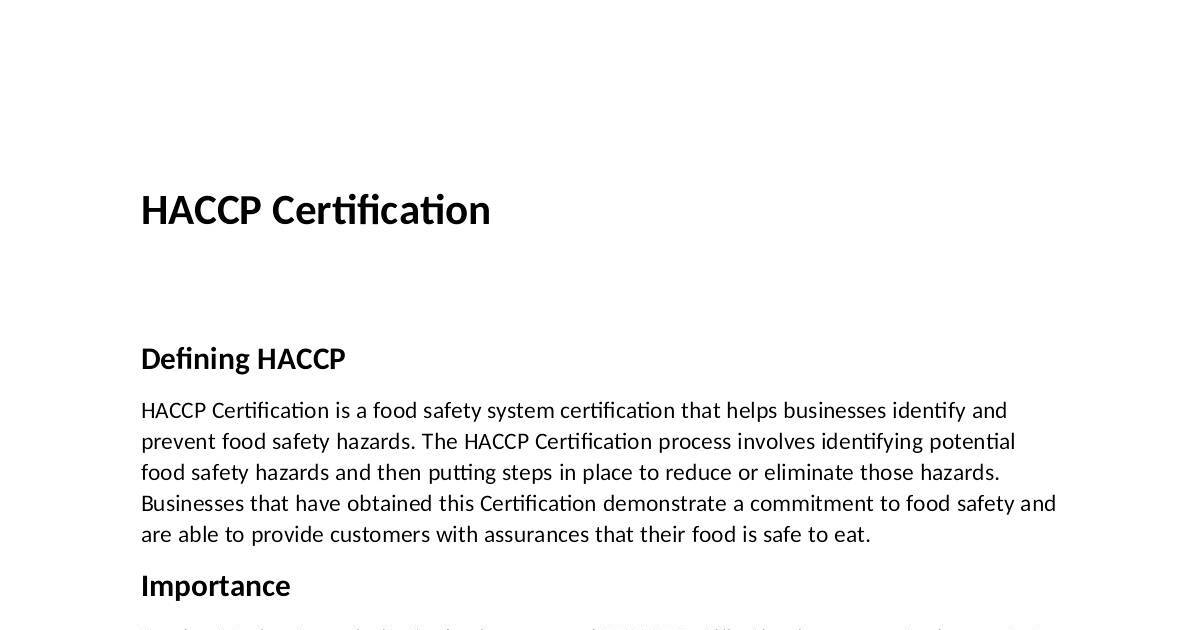 Food safety is a top priority for businesses, and HACCP Cercaon is one way to demonstrate