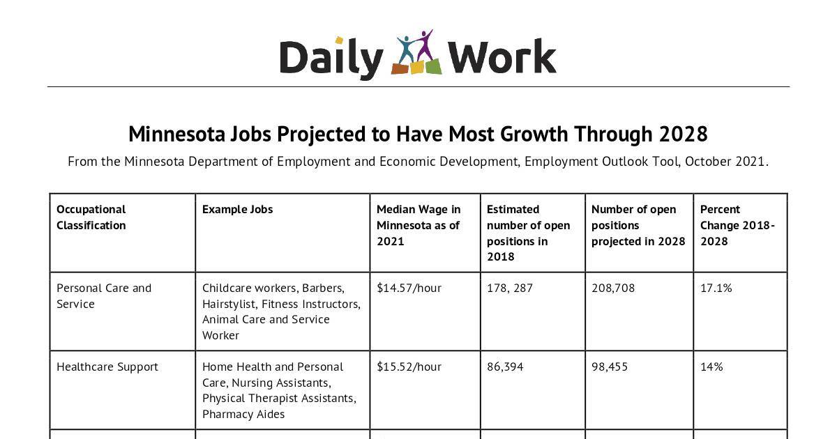 Minnesota Jobs Projected to Have Most Growth Through 2028