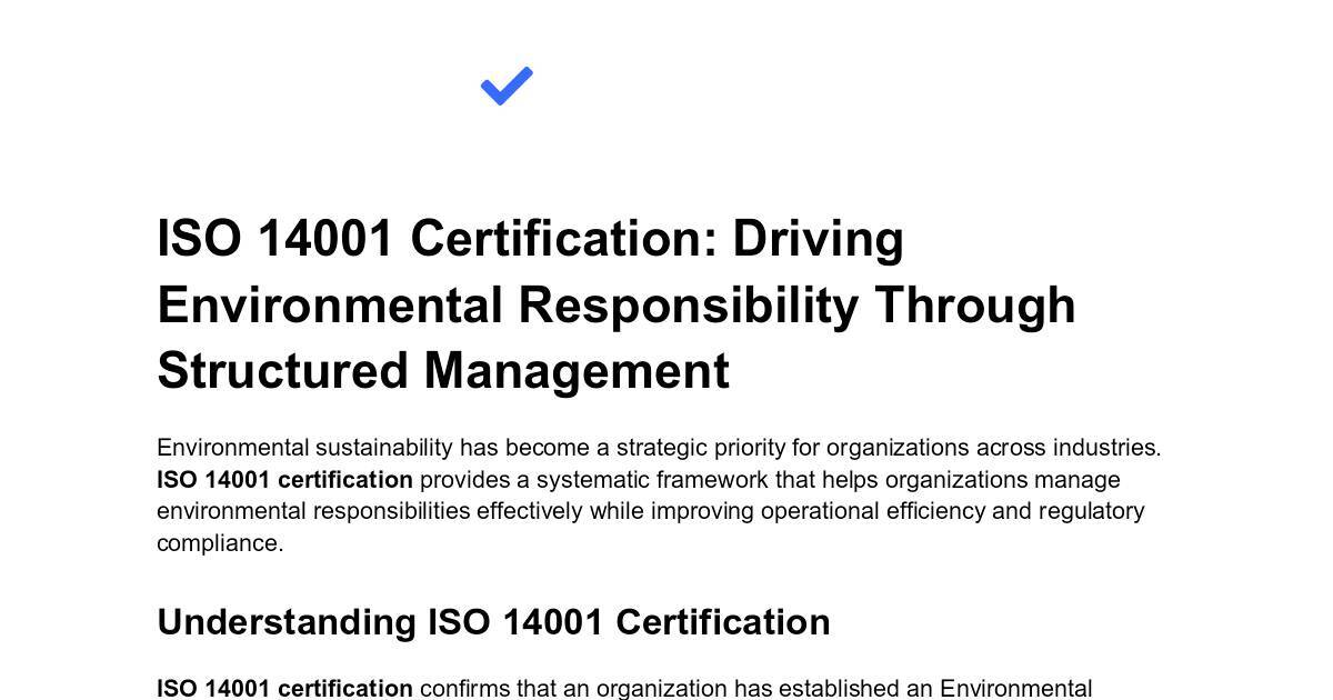 ISO 14001 certification provides a systematic framework that helps organizations manage