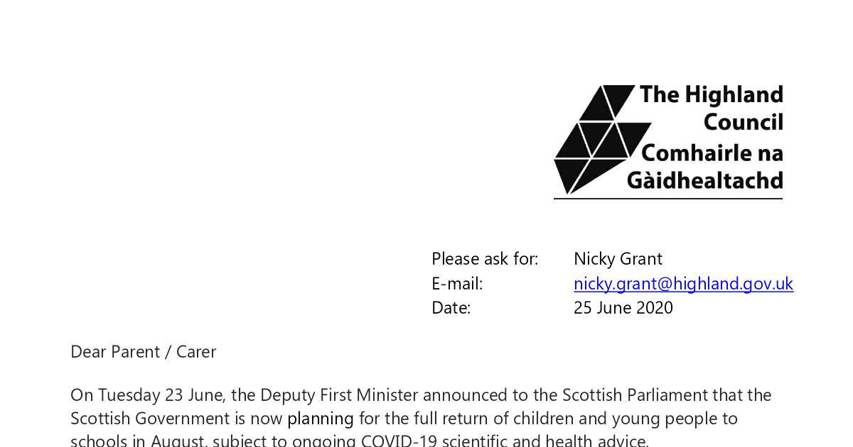 Each school is sharing their plans for return to school arrangements with their families – this