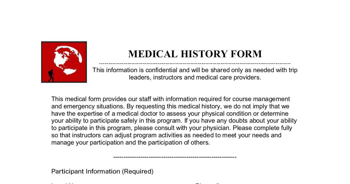 This medical form provides our staff with information required for course management