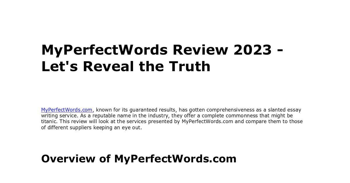 MyPerfectWords.com, known for its guaranteed results, has gotten comprehensiveness as a slanted essay
