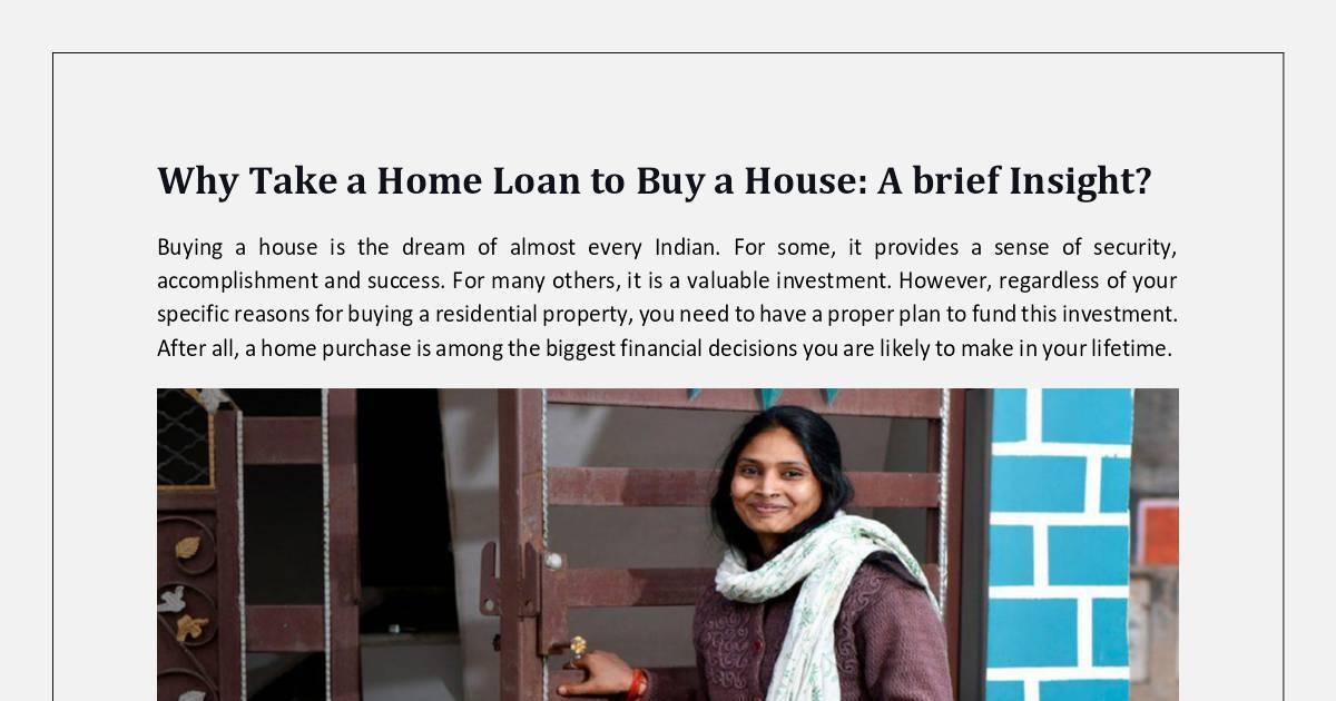 Why Take a Home Loan to Buy a House: A brief Insight?