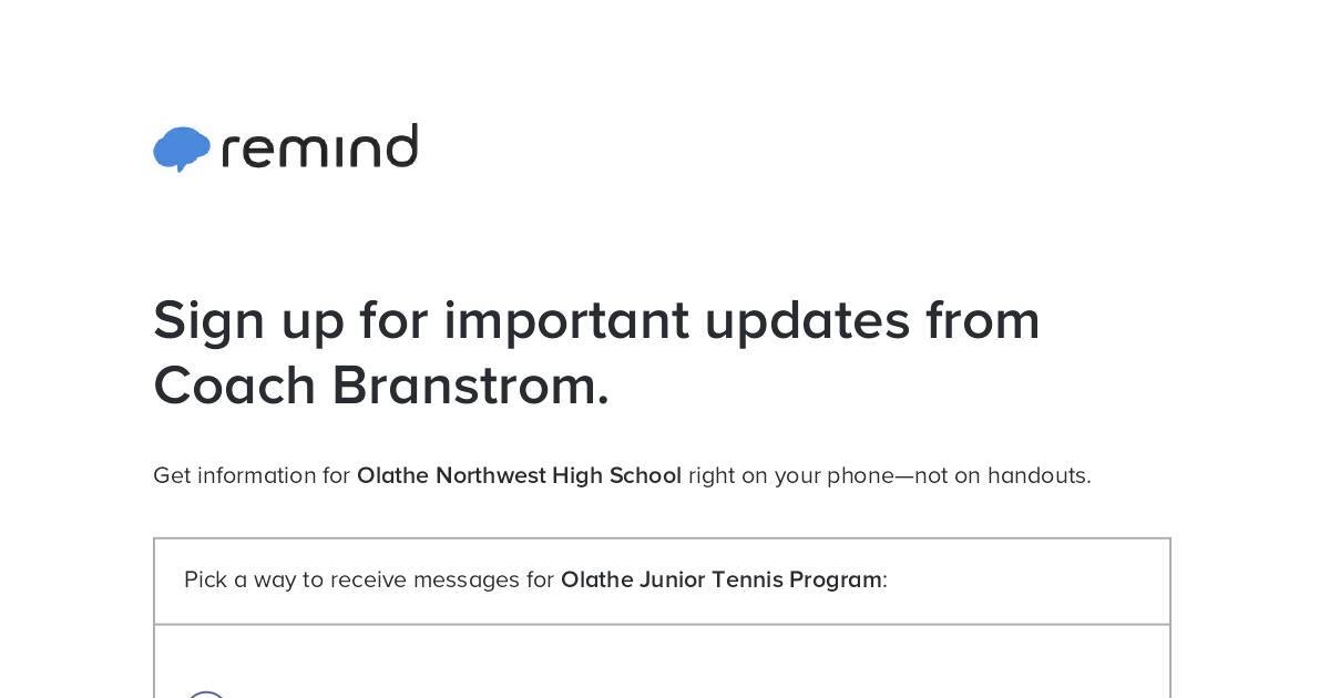 Pick a way to receive messages for Olathe Junior Tennis Program: