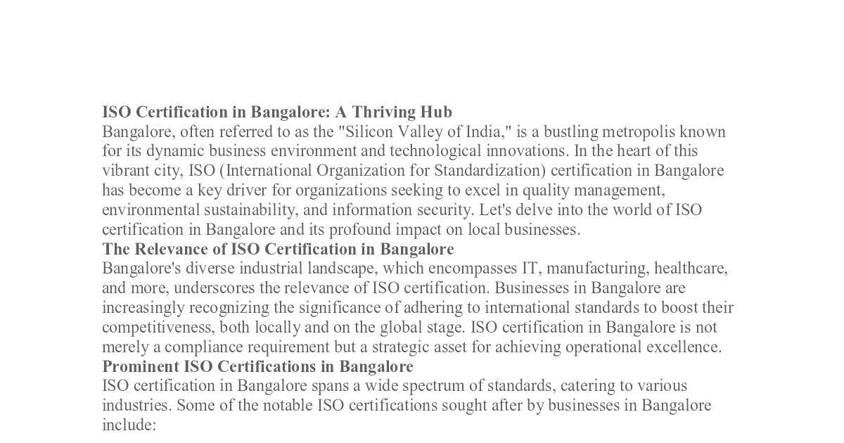 industries. Some of the notable ISO certifications sought after by businesses in Bangalore
