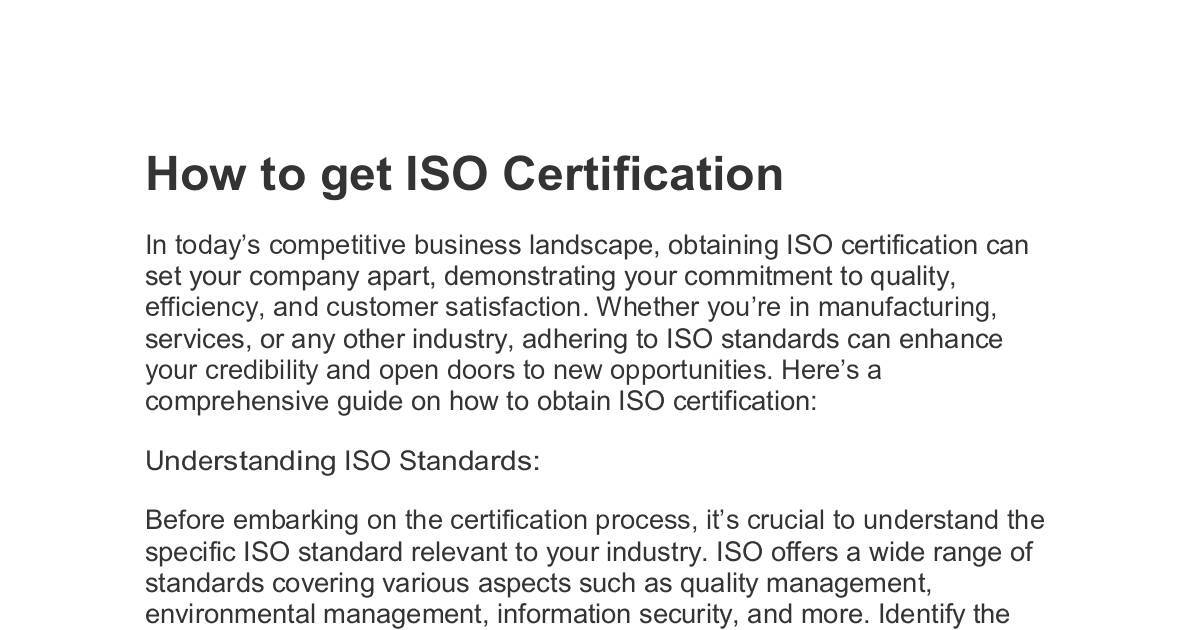 specific ISO standard relevant to your industry. ISO offers a wide range of