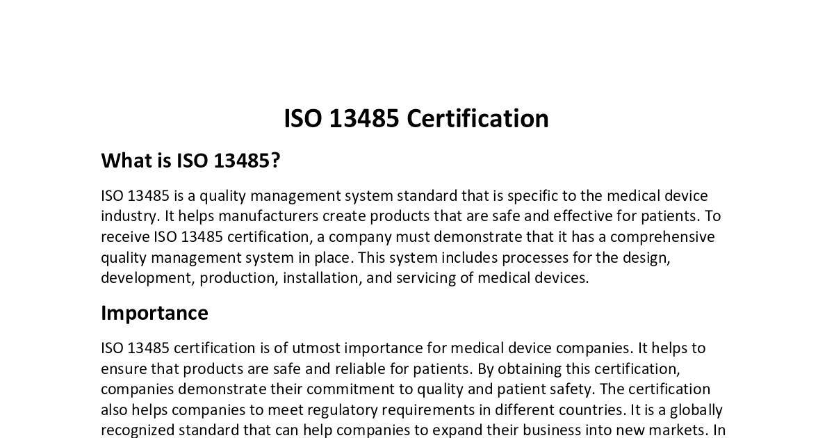 ISO 13485 certification is of utmost importance for medical device companies. It helps to