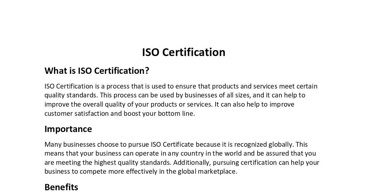 ISO Certification is a process that is used to ensure that products and services meet certain