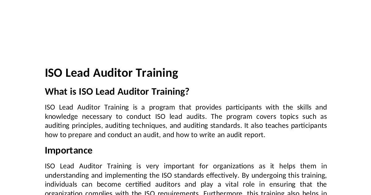 ISO Lead Auditor Training is very important for organizaons as it helps them in
