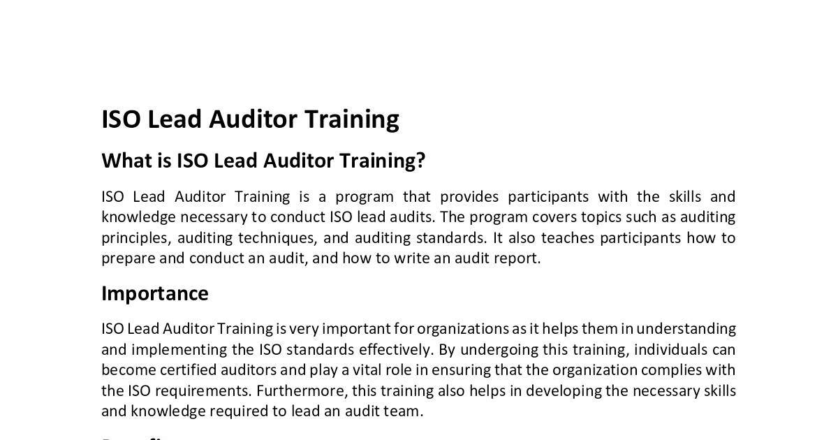 ISO Lead Auditor Training is a program that provides participants with the skills and