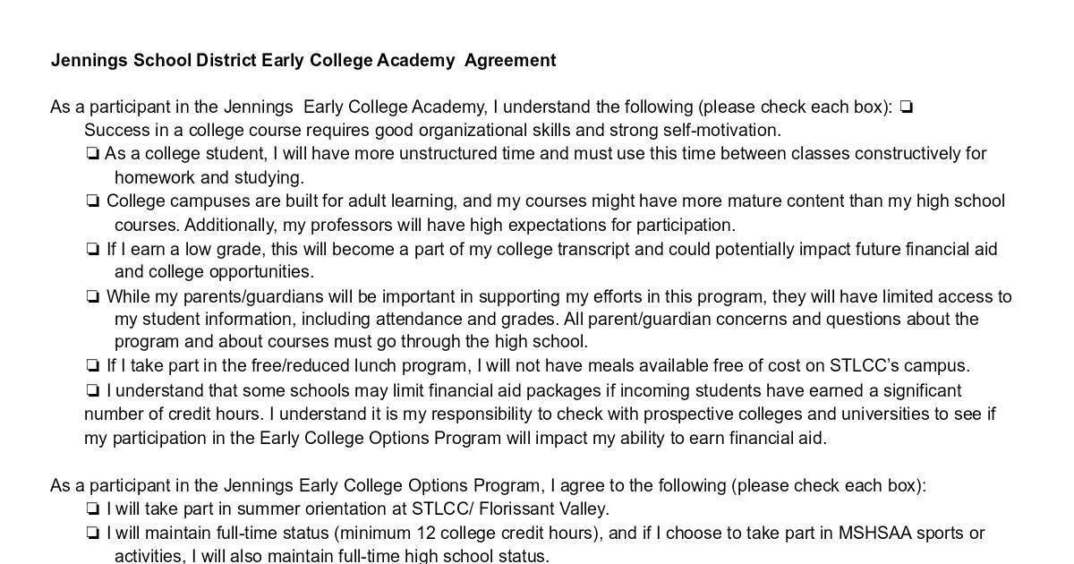 Jennings School District Early College Academy Agreement