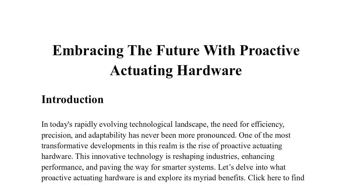 transformative developments in this realm is the rise of proactive actuating
