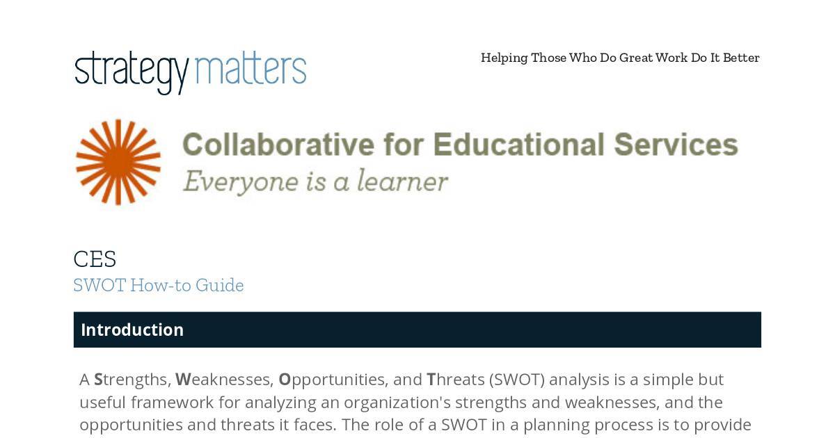 broader context of a planning process. The main purpose for the SWOT is to support goal