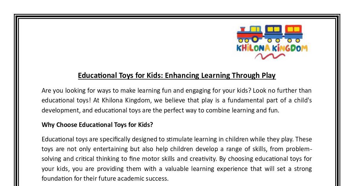 educaonal toys! At Khilona Kingdom, we believe that play is a fundamental part of a child's
