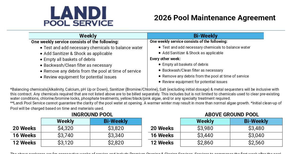 2026 Pool Maintenance Agreement