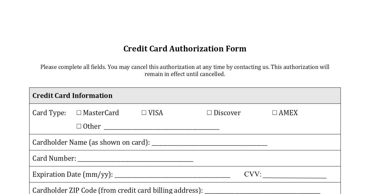 Credit Card Authorization Form