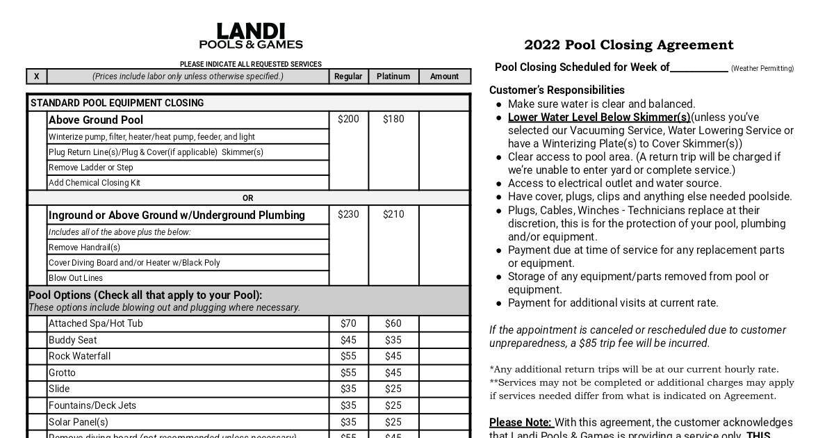 Pool Closing Scheduled for Week of____________ (Weather Permitting)