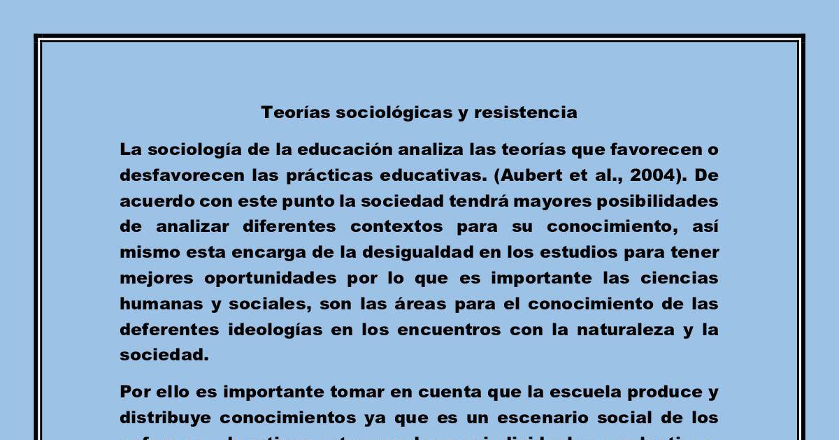 Teorías sociológicas y resistencia