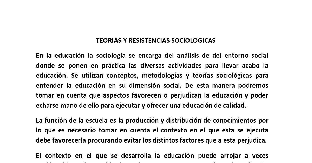 TEORIAS Y RESISTENCIAS SOCIOLOGICAS