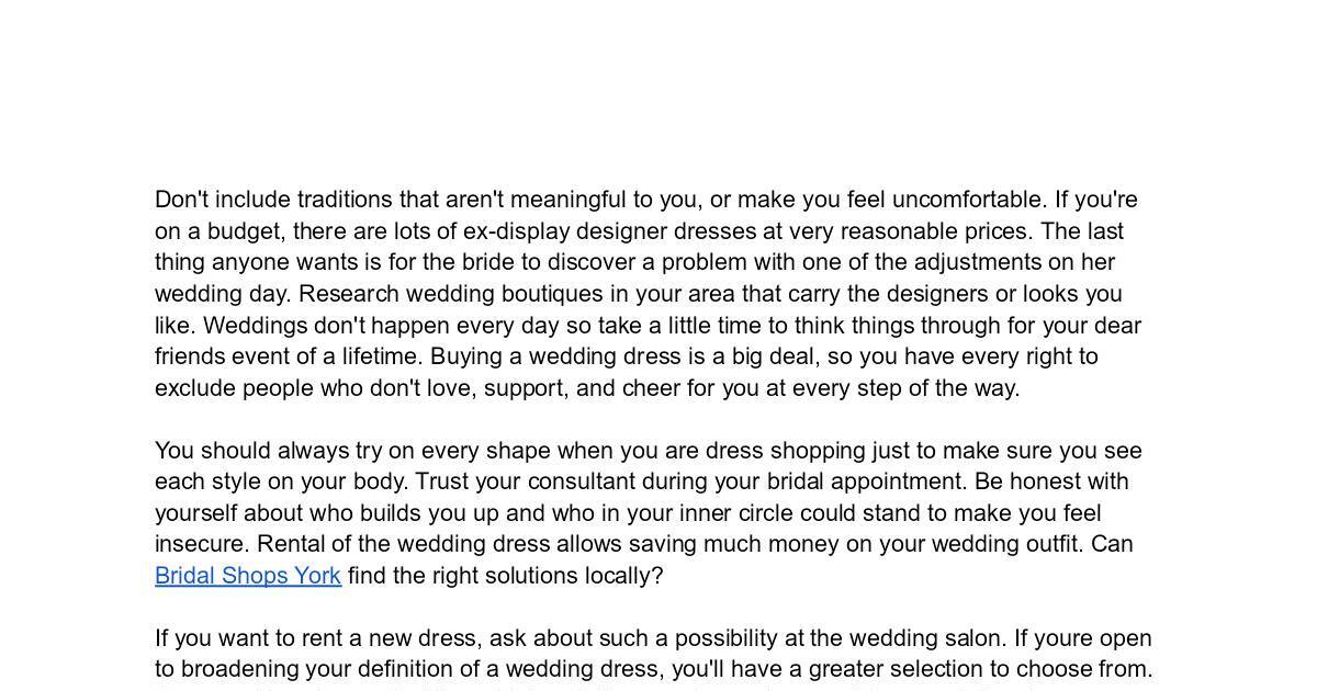 are looking for in a wedding dress, and especially what you are comfortable wearing. Read