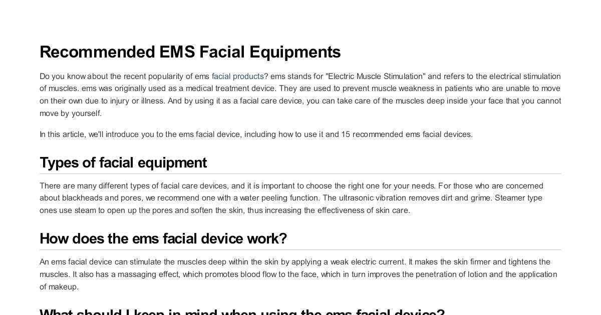 Recommendations for ems facial equipment