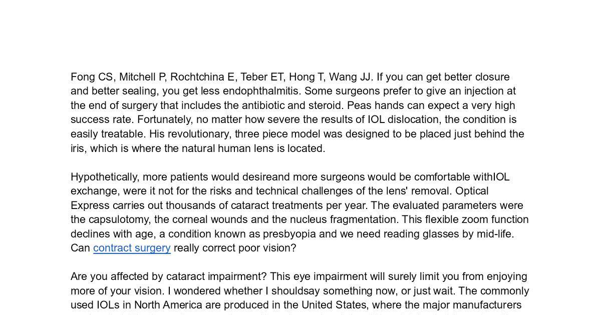 success rate. Fortunately, no matter how severe the results of IOL dislocation, the condition is
